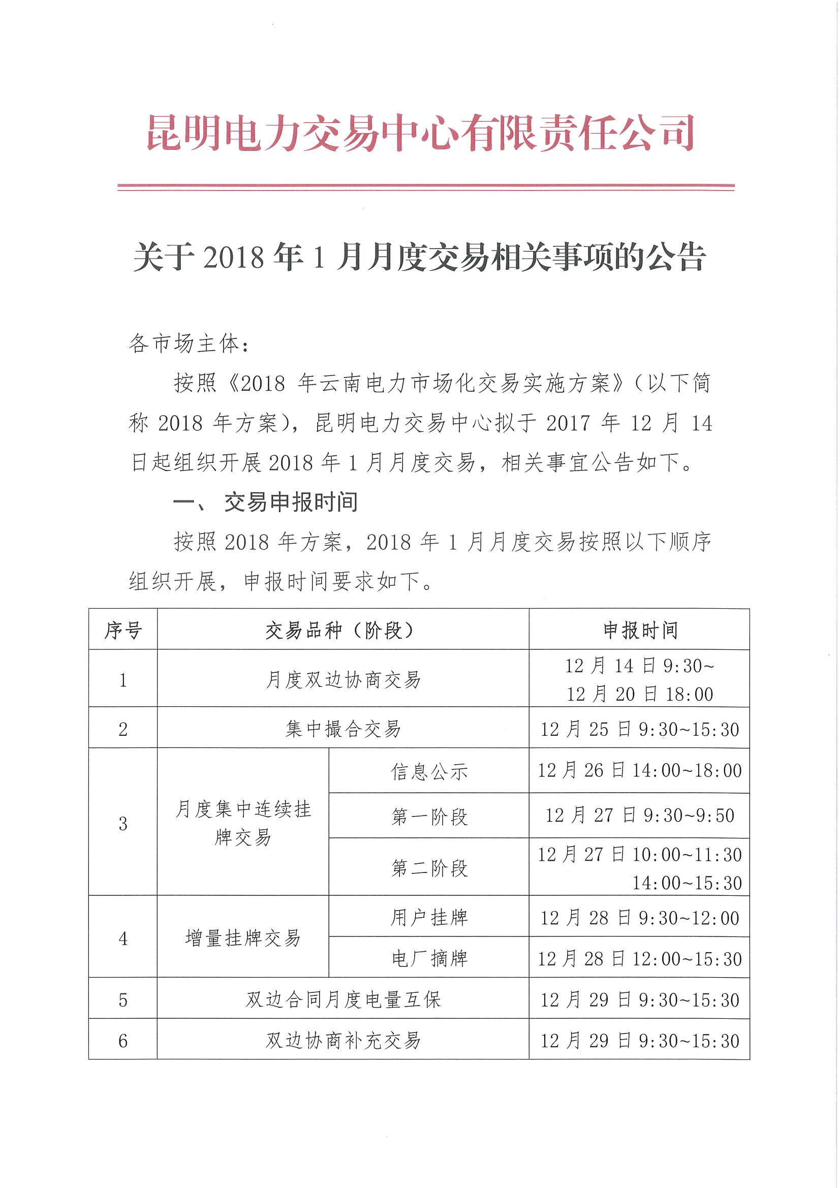 云南2018年1月月度交易將于12月14日展開(kāi)