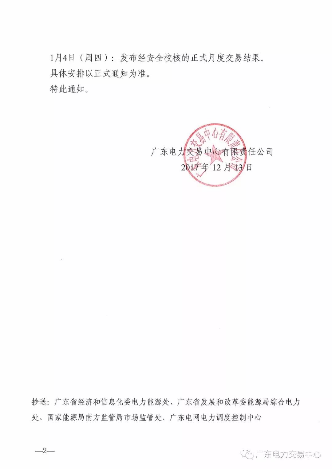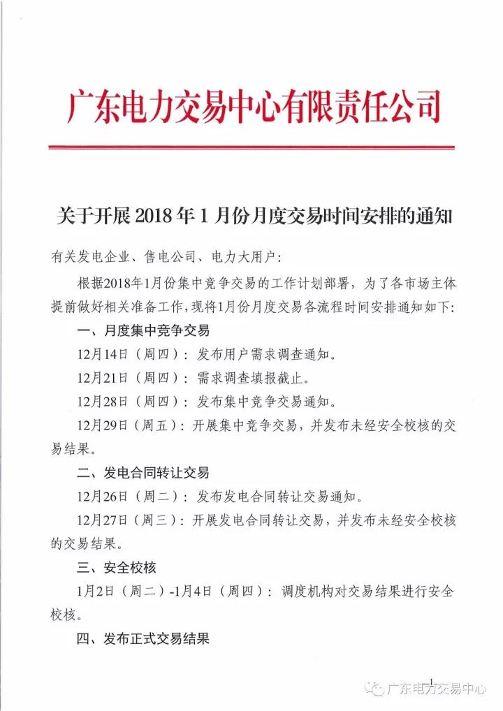 廣東公布1月份月度交易時間安排