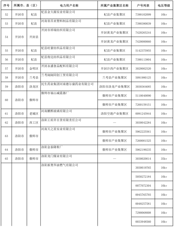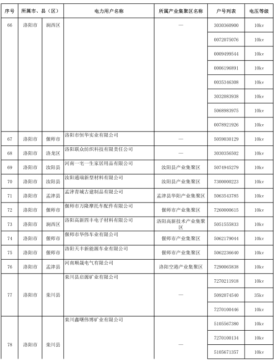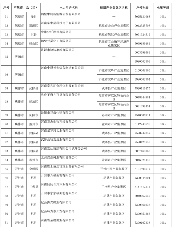河南2017年第六批191家準(zhǔn)入(具備交易資格)電力用戶名單