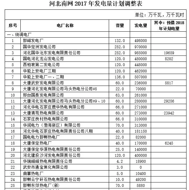 關于調(diào)整2017年河北南網(wǎng)發(fā)電量計劃的通知