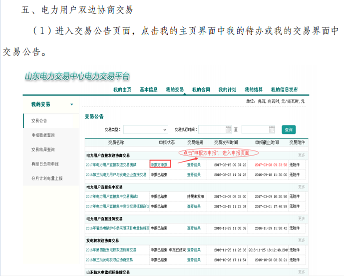 山東電力市場交易平臺年度雙邊交易流程操作指南