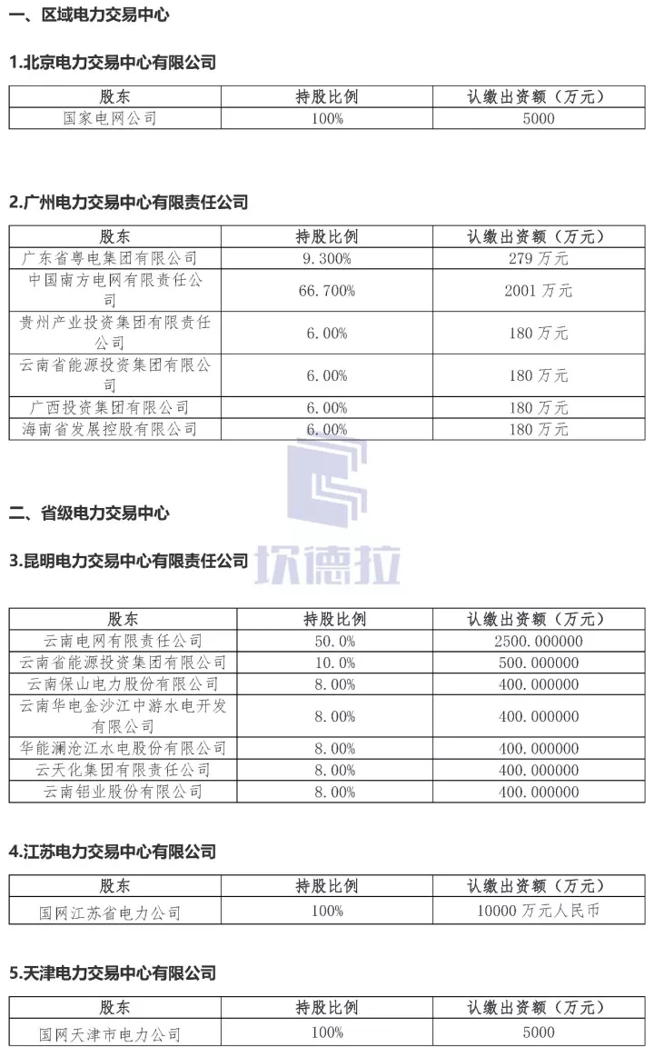 (1)2個(gè)區(qū)域性電力交易中心,一個(gè)是國(guó)家電網(wǎng)100%控股,一個(gè)是南方電網(wǎng)占66.7%、其他5方占33.3%。