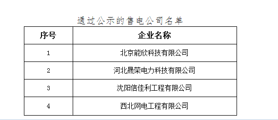 山西電力交易中心日前對(duì)北京電力交易中心推送涉及山西省業(yè)務(wù)的4家售電公司的結(jié)果進(jìn)行公示,公示期間,市場(chǎng)有關(guān)方面未對(duì)售電公司提出異議,4家售電公司在山西電力交易中心的公示通過(guò)。原文如下: