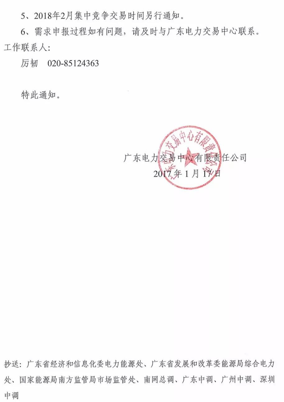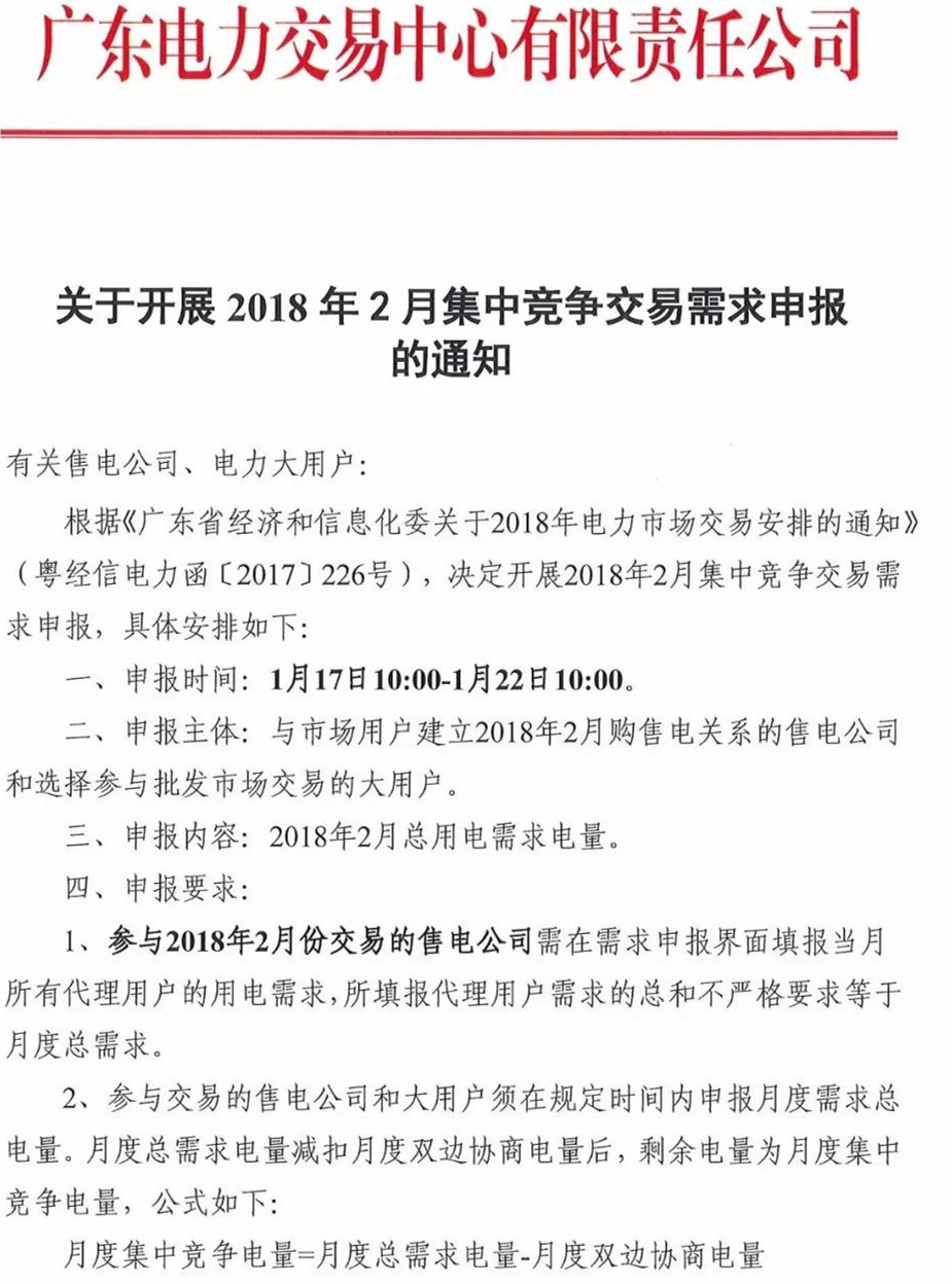 廣東開展2018年2月集中競爭交易需求申報工作