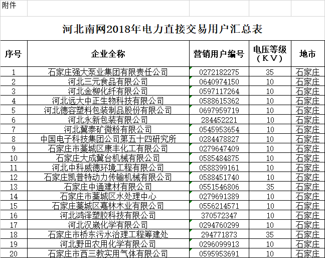 附件:河北南網(wǎng)2018年電力直接交易準入企業(yè)名單