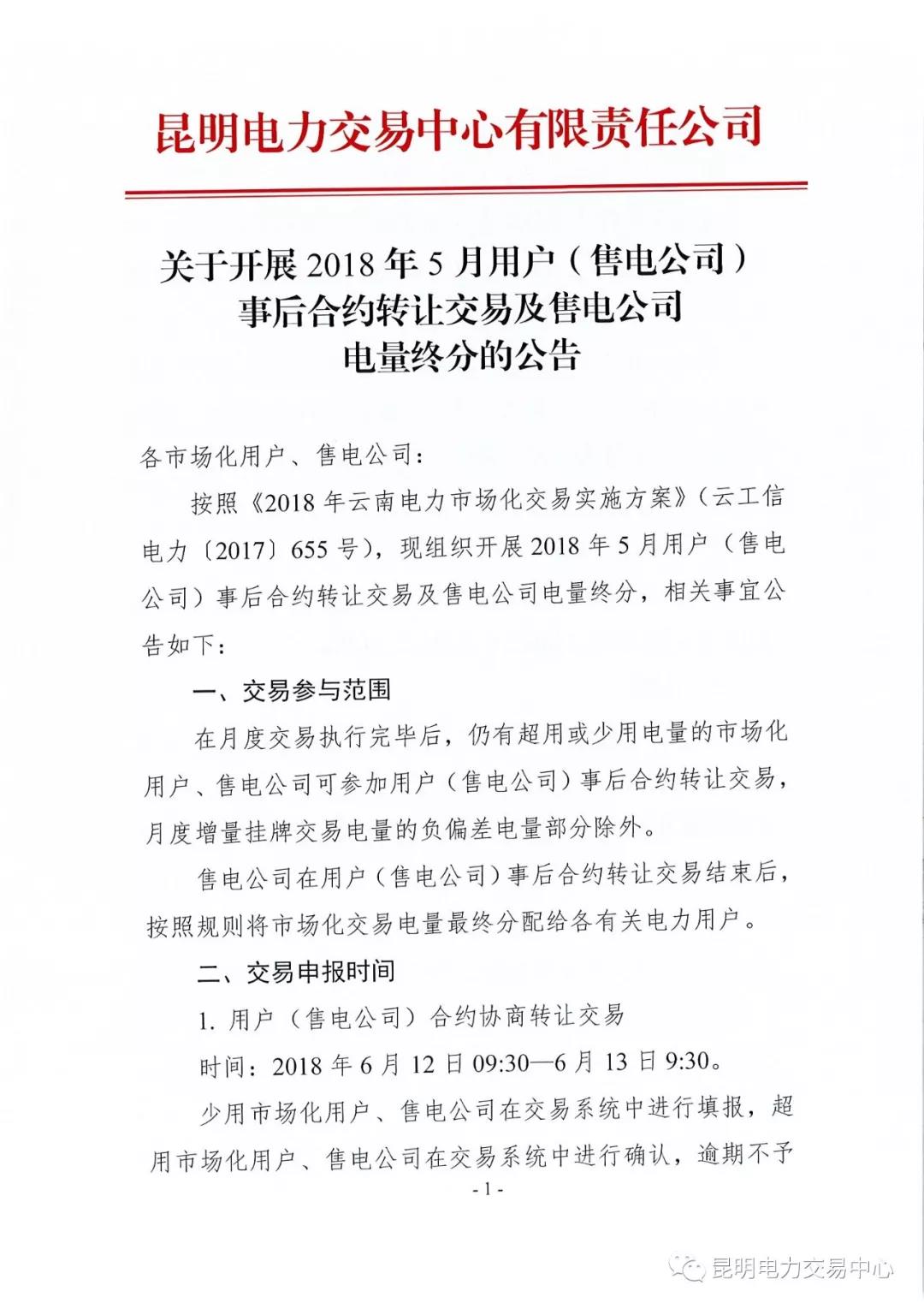 關(guān)于開展2018年5月用戶(售電公司)事后合約轉(zhuǎn)讓交易及售電公司電量終分的公告