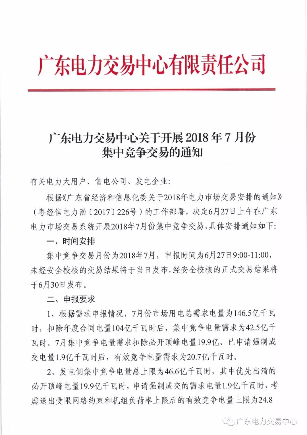廣東關(guān)于開展2018年7月份集中競爭交易的通知