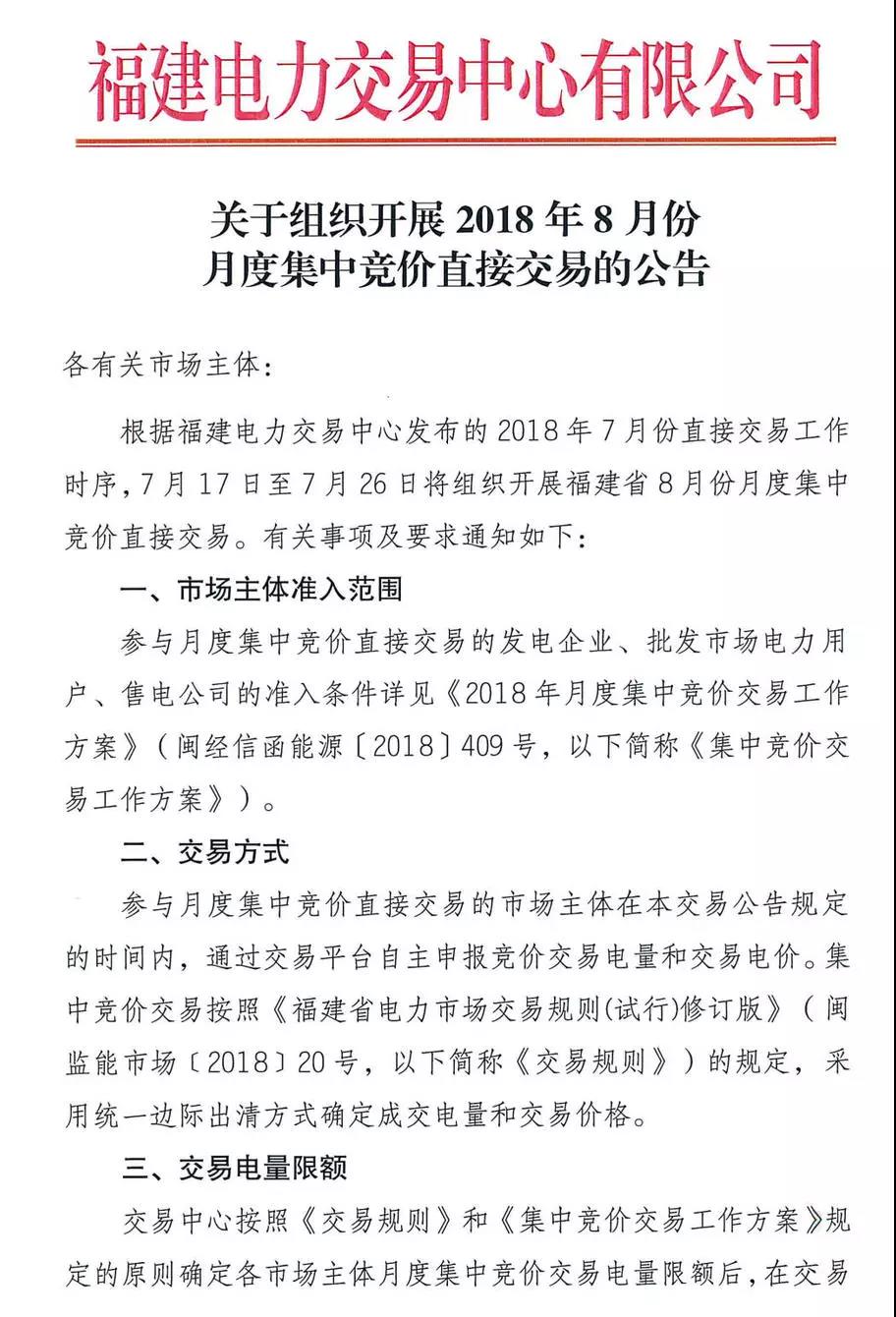 關(guān)于組織開展2018年8月份月度集中競價(jià)直接交易的公告