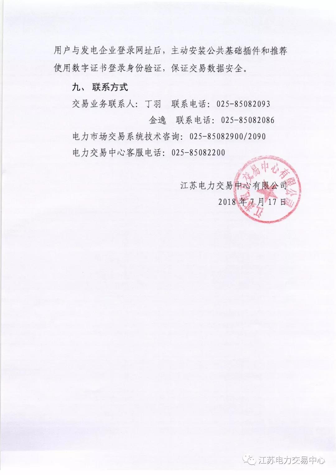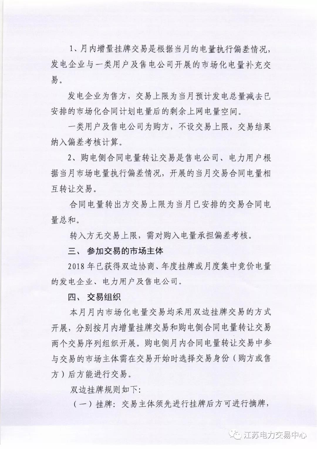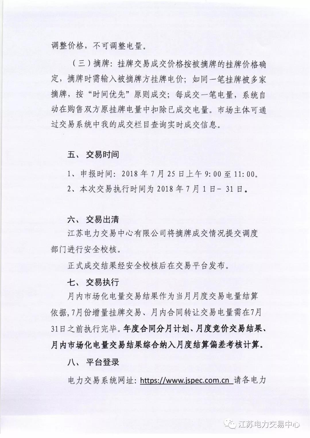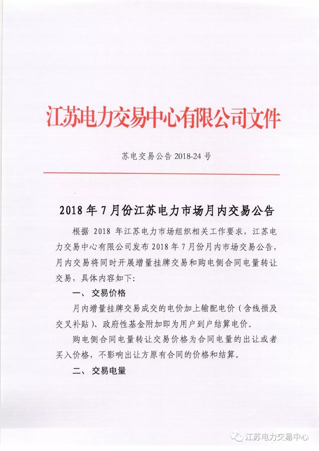 2018年7月份江蘇電力市場(chǎng)月內(nèi)交易公告