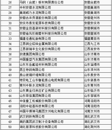 全國工業(yè)領(lǐng)域電力需求側(cè)管理第四批示范企業(yè)名單