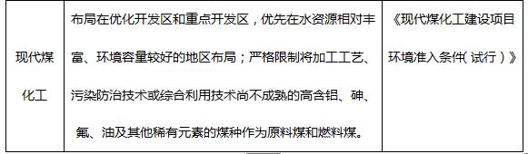 (一)嚴格執(zhí)行《關于落實<水污染防治行動計劃>實施區(qū)域差別化環(huán)境準入的指導意見》和《現(xiàn)代煤化工建設項目環(huán)境準入條件》的相關要求,在保護生態(tài)的前提下,科學布局煤化工產業(yè)。