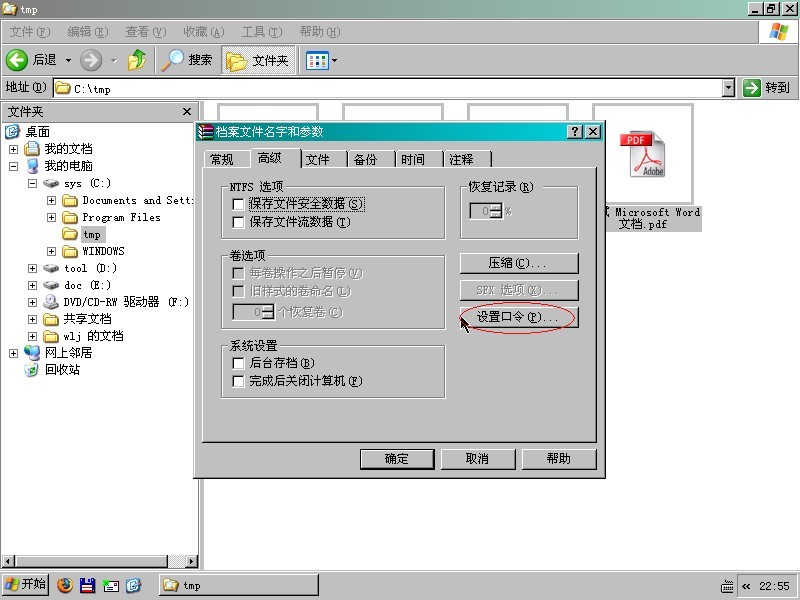 步驟5:在“高級(jí)”選項(xiàng)卡標(biāo)簽中點(diǎn)擊“設(shè)置密碼”按鈕設(shè)置一個(gè)不同的密碼,然后開(kāi)始?jí)嚎s即可。