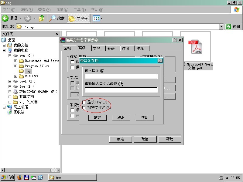 操作提示:用壓縮軟件WinRAR進(jìn)行加密