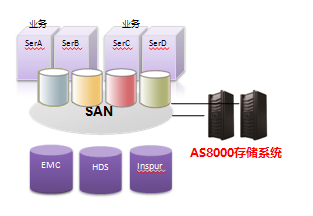 AS8000所組成的存儲資源池通過虛擬化管理平臺對設(shè)備進行有效管理,這些設(shè)備不只是全新購置的存儲,還包括客戶機房原有的存儲設(shè)備。這些舊設(shè)備不會因為數(shù)據(jù)中心的建設(shè)就棄之不用,反而會因為數(shù)據(jù)中心的高效管理起到比以前更為重要的作用。新的存儲池也將為前端業(yè)務(wù)系統(tǒng)提供按需獲得、即時可取的存儲資源。
