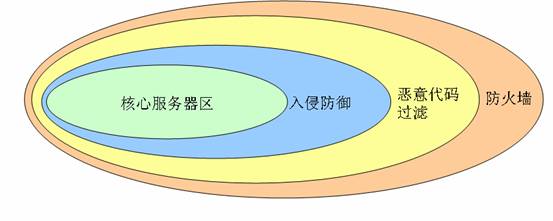 以數(shù)據(jù)中心服務(wù)器資源為核心向外延伸有三重保護(hù)功能:依托高性能硬件的一體化安全網(wǎng)關(guān)的防火墻引擎提供了對(duì)網(wǎng)絡(luò)報(bào)文深度檢測(cè)的第一重防御;以具有全面掃描能力的病毒和惡意代碼檢測(cè)引擎作為構(gòu)成對(duì)數(shù)據(jù)中心網(wǎng)絡(luò)的第二重保護(hù);依托精確的入侵防御引擎作為數(shù)據(jù)中心網(wǎng)絡(luò)的第三重保護(hù)??梢杂靡粋€(gè)形象的比喻來(lái)說(shuō)明對(duì)數(shù)據(jù)中心的三重保護(hù),數(shù)據(jù)中心就像一個(gè)國(guó)家,來(lái)往的商客就像訪問(wèn)數(shù)據(jù)中心的報(bào)文;防火墻是駐守在國(guó)境線上的軍隊(duì),一方面擔(dān)負(fù)著守衛(wèi)國(guó)土,防御外族攻擊(DDOS)的重任,另一方面負(fù)責(zé)檢查來(lái)往商客的身份(訪問(wèn)控制);病毒和惡意代碼過(guò)濾是國(guó)家的警察,隨時(shí)準(zhǔn)備捉拿雖然擁有合法身份,但仍在從事違法亂紀(jì)活動(dòng)的商客(蠕蟲(chóng)病毒),以保衛(wèi)社會(huì)秩序;入侵防御系統(tǒng)(IPS)就像企業(yè)雇傭的保安,提供最基本的安全監(jiān)管,時(shí)刻提防由內(nèi)外部人員造成的破壞。