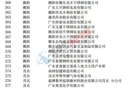 廣東直接交易準(zhǔn)入電力大用戶全名單匯總?。?-20批次)