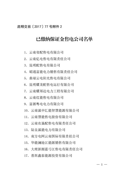 從昆明電力交易中心獲悉,按照《售電公司準入與退出管理辦法》、《關(guān)于印發(fā)云南省售電側(cè)改革實施方案的通知》的文件要求,昆明電力交易中心已將6月新增注冊售電公司納入售電公司目錄。