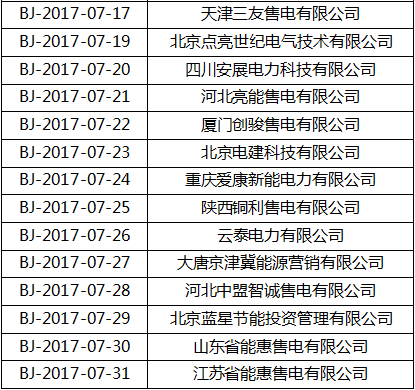 北京電力交易中心于2017年8月7日至2017年9月6日對(duì)京網(wǎng)售電(北京)有限公司等31家售電公司市場(chǎng)注冊(cè)申請(qǐng)材料進(jìn)行了公示。