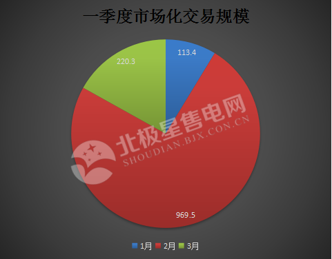 2018年,電力交易市場化依然是電力改革的重頭戲。從北京電力交易中心發(fā)布的市場化交易規(guī)模數(shù)據(jù)來看,一季度電力交易規(guī)模達到1303.2億千瓦時,有15個省份的售電公司參與電力直接交易。1月交易規(guī)模113.4億千瓦時,組織東北送山東、山西低谷送湖北抽蓄、甘肅送重慶發(fā)電權、陜西送重慶等市場化交易12.6億千瓦時;2月交易規(guī)模969.5億千瓦時,開展2018年浙江省間及省內發(fā)電企業(yè)集中競價交易,交易規(guī)模914.6億千瓦時;3月交易規(guī)模220.3億千瓦時,組織銀東直流西北送山東、京津唐地區(qū)等電力直接交易118.9億千瓦時。