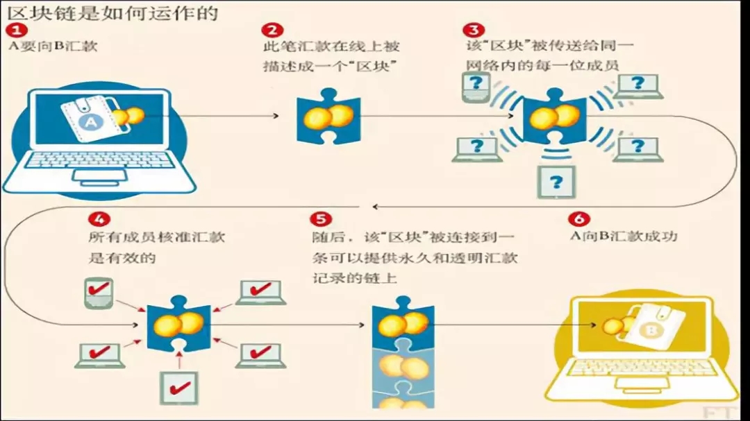 看這張圖就明白什么是區(qū)塊鏈了?我給某個(gè)人匯一筆錢,這個(gè)交易變成一個(gè)電子密碼,然后匯款同時(shí)向幾萬臺電腦宣布我給他匯款了,這是不可更改。第四,所有人同時(shí)確認(rèn)他匯款了,第五,這個(gè)永遠(yuǎn)被鎖定,不可篡改。下一個(gè)就是區(qū)塊鏈,一個(gè)確認(rèn),最后成功,一個(gè)很簡單的事情,但是為什么過去沒有這個(gè)東西呢,過去匯款很簡單,錢給銀行,銀行給你轉(zhuǎn)了,但是銀行要崩盤呢?黑客呢?可以黑一兩臺,不可能把全世界所有電腦都黑了。