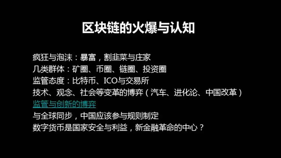 第一,財富效應(yīng)引發(fā)了區(qū)塊鏈的關(guān)注。區(qū)塊鏈的確有人暴富,最夸張一個人,去年5月份的時候,完全沒有錢,借了五萬塊錢,全部投入各種加密幣,他現(xiàn)在現(xiàn)金兩個多億。當然也有人詐騙,,也有很多問題,暴富、割韭菜和莊家等這些問題的出現(xiàn),不僅在區(qū)塊鏈上,在任何行業(yè)任何創(chuàng)新產(chǎn)品都存在,往往這些人帶動了整個社會關(guān)注,有一批暴富的人才產(chǎn)生財富效用,吸引另一大批人沖進去。但是這個過程中要允許很多人暴富,這是正常的。其實在座很多企業(yè)家早期成功都算是暴富的。