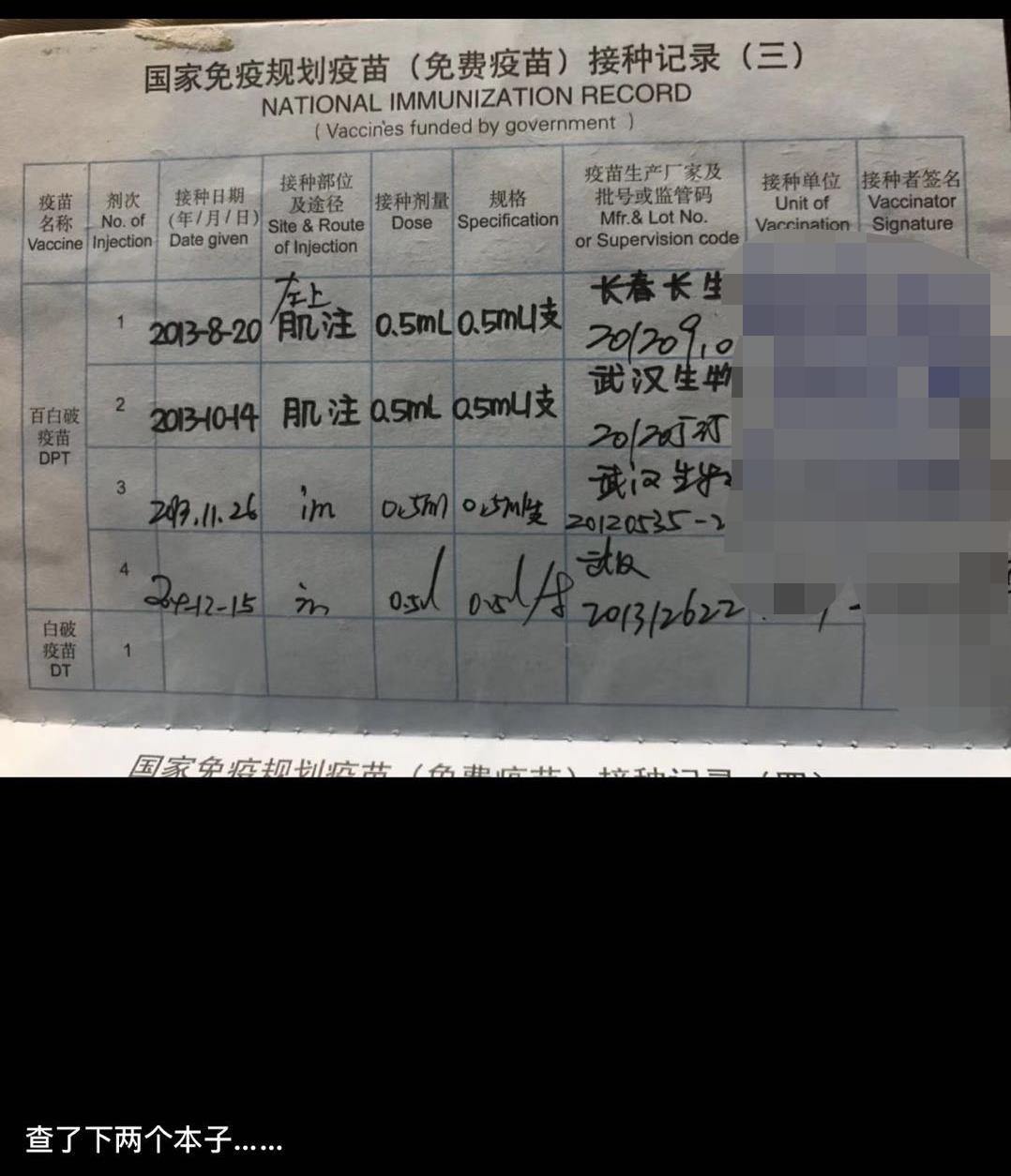 (朋友曬出孩子前曾注射的長春xx百白破ym)