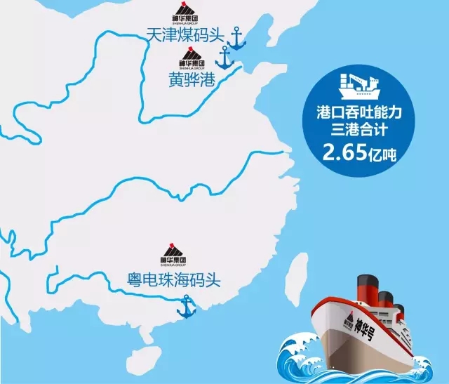 神華擁有三個自有出???碼頭):黃驊港、天津煤碼頭、粵電珠海碼頭,港口吞吐量達(dá)2.65億噸。其中,黃驊港已成為北方煤炭下水第一大港。