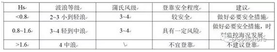 有義波高小于0.8m時,安全登靠,做好安全措施;