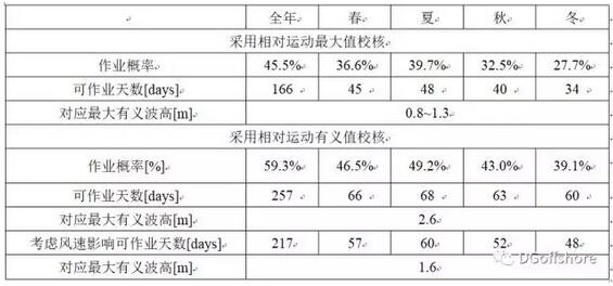 如果以相對運動最大值作為校核條件,則最大作業(yè)有義波高在0.8~1.3m左右;