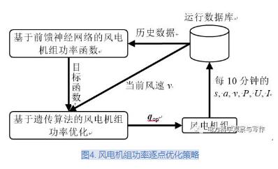 根據(jù)前述分析,本文提出一種逐點優(yōu)化策略,用于優(yōu)化風電機組功率,其流程圖如圖4所示,該策略的主要思想是在每運行時刻點調(diào)用遺傳算法,優(yōu)化搜索風電機組最優(yōu)控制參數(shù)。