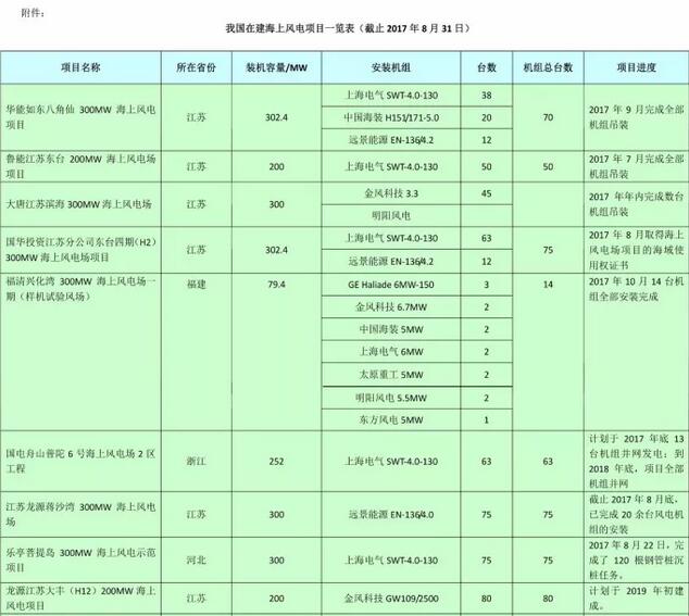 附件:《我國在建海上風(fēng)電項目一覽表》