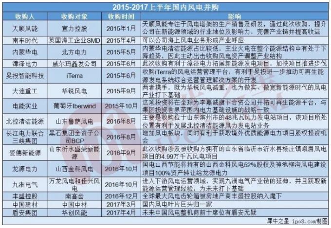 中國風(fēng)電企業(yè)也因此進入一個大浪淘沙的階段,風(fēng)電收購正當時,局部的兼并重組、收購大戲不斷上演,部分企業(yè)還跑到國外市場進行收購。以下是近兩年以國內(nèi)相關(guān)企業(yè)為主體的并購情況。