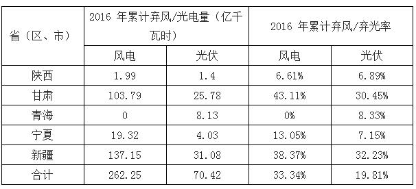 2016 年西北區(qū)域新能源棄風、棄光情況