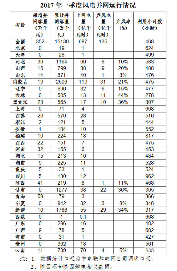 1-3月,全國風電新增并網(wǎng)容量352萬千瓦,截至3月底,累計并網(wǎng)容量達到1.51億千瓦,累計并網(wǎng)容量同比增長13%;1-3月,全國風電上網(wǎng)電量687億千瓦時,同比增長26%;平均利用小時數(shù)468小時,同比增加46小時;風電棄風電量135億千瓦時,比去年同期減少57億千瓦時,棄風限電情況明顯好轉(zhuǎn)。