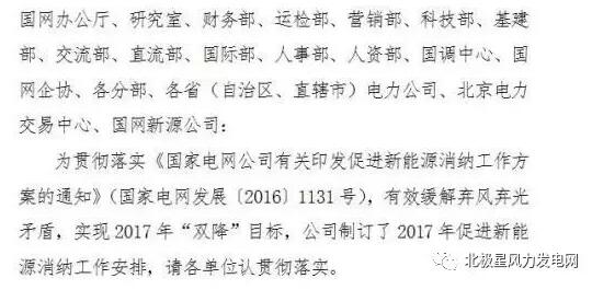 國家電網(wǎng)安排2017年促進(jìn)新能源消納工作:棄風(fēng)比例超10%省份暫停出具風(fēng)電項(xiàng)目接入系統(tǒng)意見(附通知)