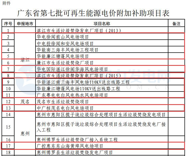 附件:廣東省第七批可再生能源電價附加補(bǔ)助項目表