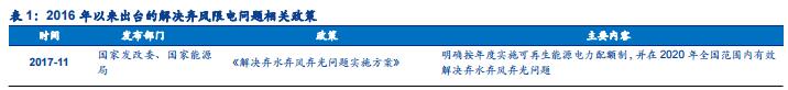 1)首先是政策頻出,多途徑整頓棄風。為了解決棄風限電問題,2016 年以來,國家發(fā)改委和國家能源局頻頻出臺相應政策,通過開展風電跨省區(qū)市場化交易、替代燃煤自備電廠發(fā)電、合理安排火電機組深度調峰、開展電力輔助服務市場試點等工作,積極促進風電等新能源消納。在風電上網方面,明確了各地區(qū)保障性風電上網數量以及優(yōu)先上網政策。在風電機組裝機方面,限制了棄風率過高地區(qū)新增裝機容量的建設。在風電調度方面,提出了發(fā)揮特高壓跨區(qū)消納的要求。