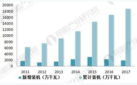 圖表2:2011-2017年中國(guó)新增和累計(jì)風(fēng)電裝機(jī)容量(單位:萬(wàn)千瓦)