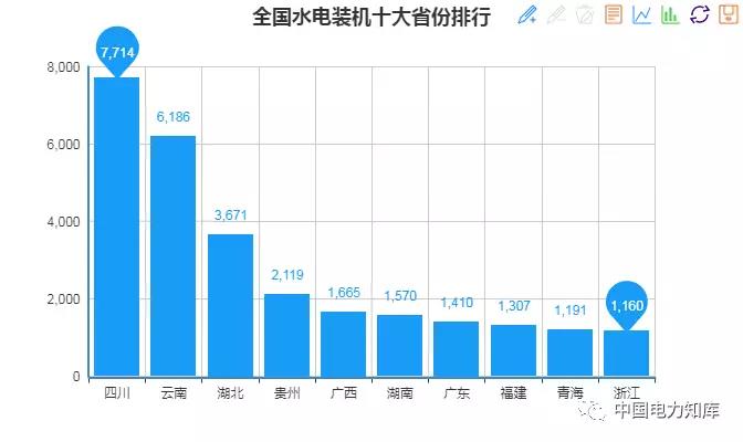 截止2017年底,全國(guó)十大水電裝機(jī)省份分別是:四川7714萬(wàn)千瓦、云南6186萬(wàn)千瓦、湖北3671萬(wàn)千瓦、貴州2119萬(wàn)千瓦、廣西1665萬(wàn)千瓦、湖南1570萬(wàn)千瓦、廣東1410萬(wàn)千瓦、福建1307萬(wàn)千瓦、青海1191萬(wàn)千瓦、浙江1160萬(wàn)千瓦。