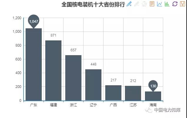 截止2017年底,全國(guó)七大核電裝機(jī)省份分別是:廣東1047萬(wàn)千瓦、福建871萬(wàn)千瓦、浙江657萬(wàn)千瓦、遼寧448萬(wàn)千瓦、廣西217萬(wàn)千瓦、江蘇212萬(wàn)千瓦、海南130萬(wàn)千瓦。