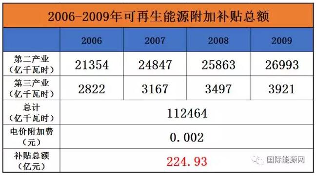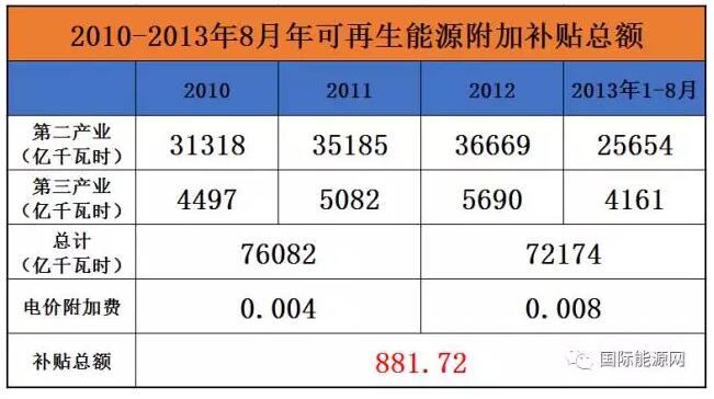 按此標(biāo)準(zhǔn),我們通過(guò)對(duì)二、三產(chǎn)業(yè)用電量的計(jì)算,得出理論上可再生能源到底獲得了多少補(bǔ)貼。