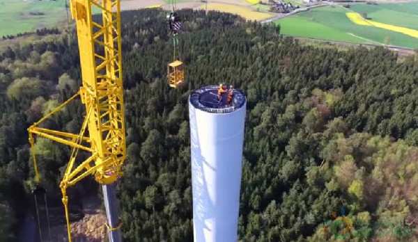 科技干貨一:陸地230米高度混合塔架風(fēng)電機(jī)組吊裝。 Nordex公司在德國萊茵蘭—普法爾茨州(Rhineland-Palatinate)的Hausbay風(fēng)電場安裝了世界上最高的風(fēng)電機(jī)組。該N131-3300機(jī)組的輪轂高度為164米,風(fēng)