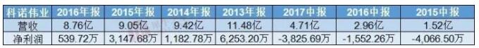 營(yíng)收方面,共有7家企業(yè)營(yíng)收過億,而在增長(zhǎng)率方面,有10家企業(yè)營(yíng)收同比下降。其中,科諾偉業(yè)2017年上半年實(shí)現(xiàn)營(yíng)收4.71億,居26家企業(yè)之最,但其當(dāng)期凈利潤(rùn)虧損3825.69萬。此外還有一點(diǎn)值得注意,今年,科諾偉業(yè)年度營(yíng)收一直呈下降趨勢(shì),半年報(bào)營(yíng)收卻總是上升的,與此同時(shí),其凈利潤(rùn)的波動(dòng)幅度也非常大。