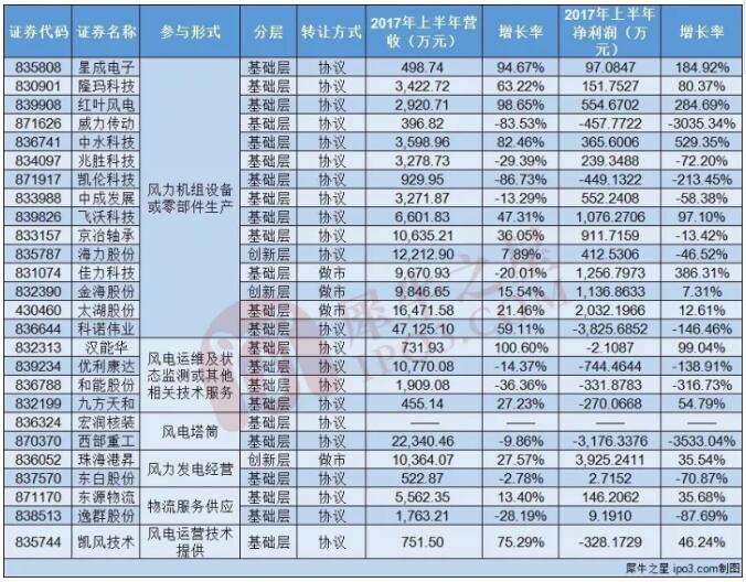新三板26家風(fēng)電企業(yè)上半年業(yè)績(jī)情況