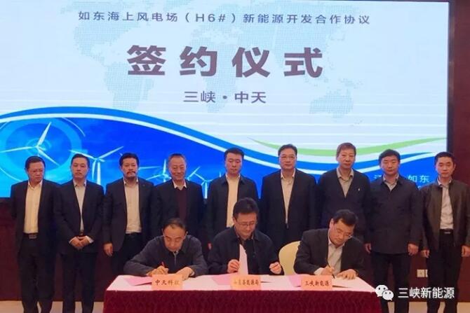 11月9日,三峽新能源總經(jīng)理李斌、副總經(jīng)理王益群一行拜會江蘇省如東縣政府,考察中天科技、韓通集團、海力風(fēng)電等企業(yè),并分別與上述企業(yè)簽署如東75萬千瓦海上風(fēng)電開發(fā)合作協(xié)議,拉開了與多方合作開發(fā)如東縣海上風(fēng)