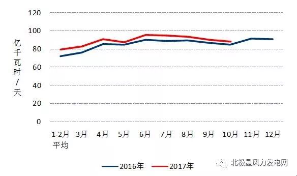 圖3 2016、2017年以來分月制造業(yè)日均用電量