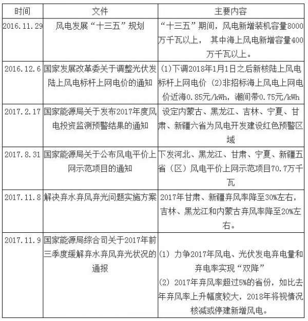 2016年底以來能源局關(guān)于風(fēng)電行業(yè)的通知通報