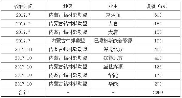 內(nèi)蒙古2017年新核準(zhǔn)項目