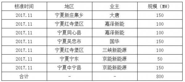 寧夏2017年新核準(zhǔn)項目