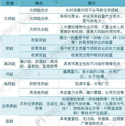 圖表1:新能源的分類